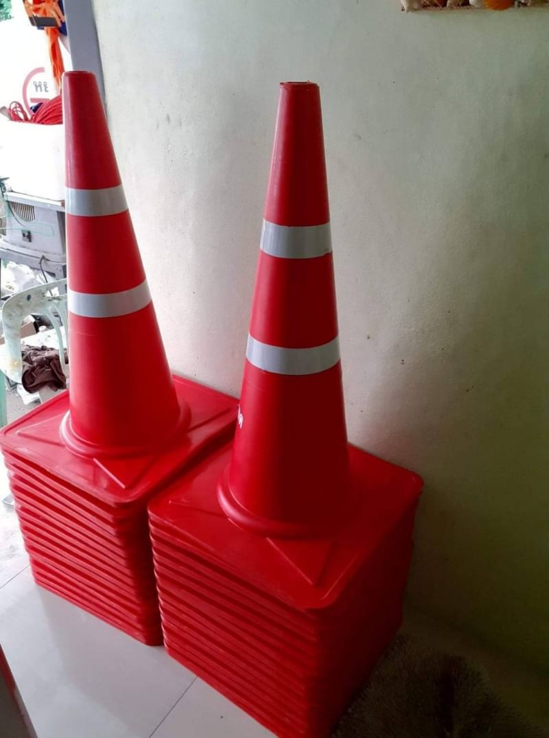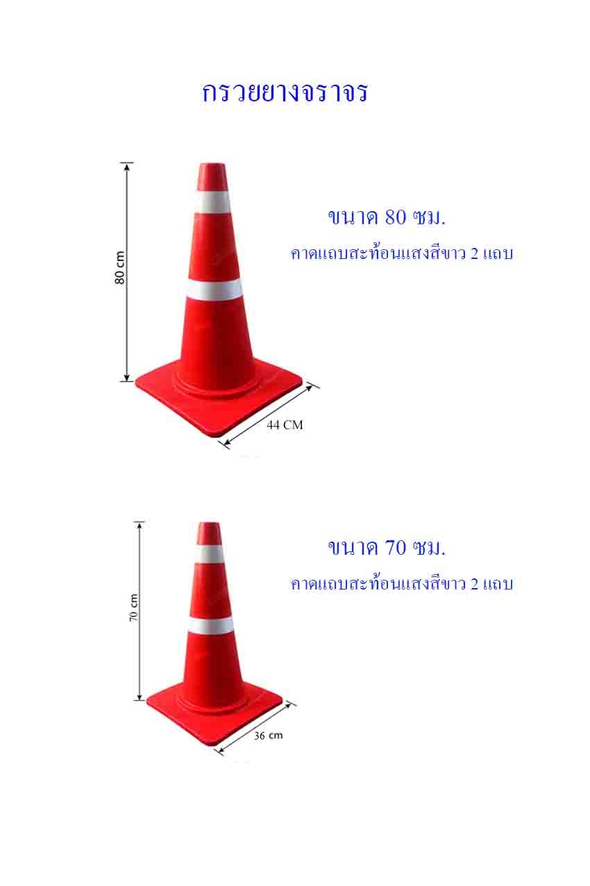 กรวยยางจราจรสีส้ม มีขนาด 50 ซม., 70 ซม., 80 ซม. พร้อมติดชื่อหน่วยงานให้ด้วยครับ